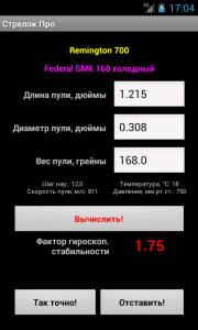 1. Пристреливаем винтовку 1-м патроном в списке (смотри предыдущую часть). На картинке это пункт 1. 2. Предположим, мы хотим настроить 2-м патроном "холодный" выстрел тем же патроном. Переименовываем второй патрон в "Federal SMK 168 холодный" и вводим все параметры как в первом патроне.