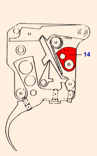 3. Опять взведите ударник, выворачивайте винт (2) до тех пор, пока он не коснется пластины (12). Теперь, нажимая на спусковой крючок, вворачивайте винт до тех пор, пока не "щелкнет" ударник. Тепер вверните винт еще на 1/4 оборота.