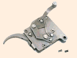Рычаги (6) и (7) будут оставаться в "сложенном" состоянии все время пока затвор открыт, в это время пружина (10) воздействует на рычаги (6) и (7) стремясь вернуть их в состояниие "взвода". Шептало спускового крючка (5) возвращается в исходное состояние вращением шептала верхнего рычага (8) на его оси (13). Шептало верхнего рычага подпружинено концом пружины (10).